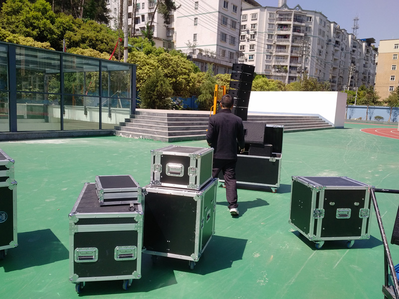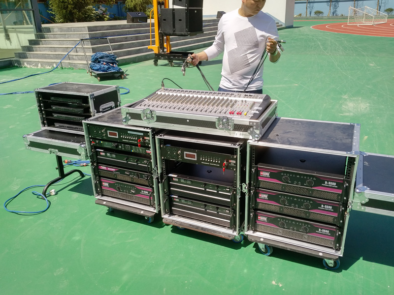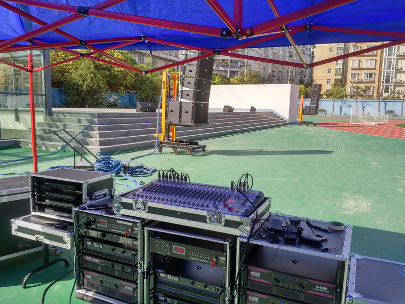 仁懷小學室外音響,采用哈曼專業係列線陣音響,線陣低音+線陣全頻+返聽,處理器采用國際領先的DBX,舒爾無線係統。全套采用航空機櫃包裝。、