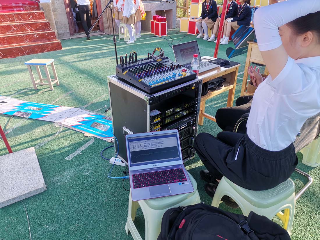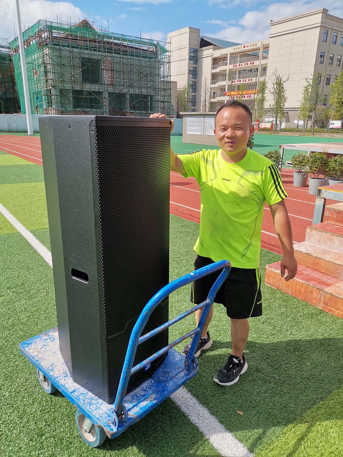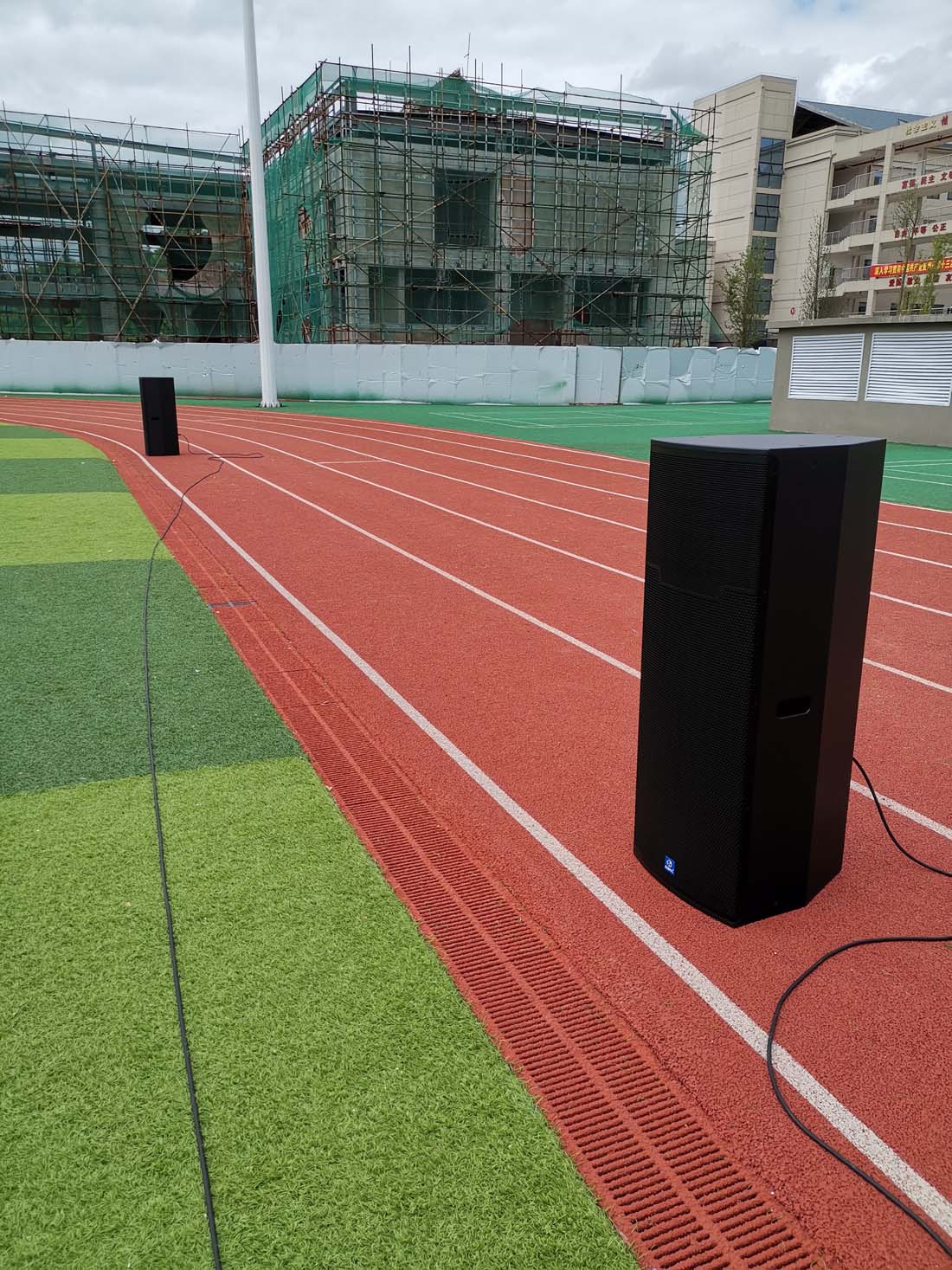貴陽師範操場演出音響,采用4隻雙15黄色视频软件下载,兩隻12寸返聽黄色视频软件下载,頭戴話筒4隻,手持話筒6隻,合唱話筒2隻,各種專業設備齊全,此配置類型性價比較高,滿足1000人匯演需求。