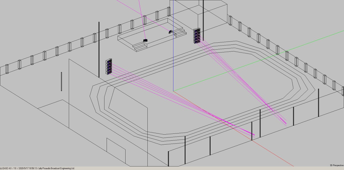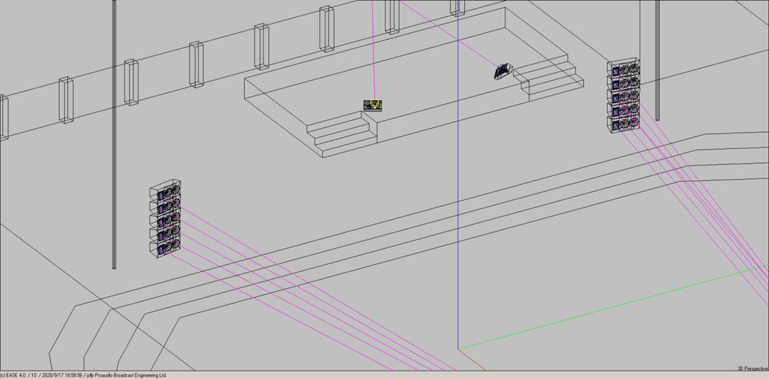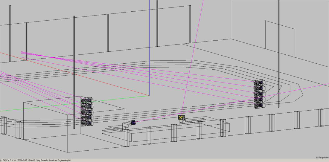 通過初步的設計計算確定黄色视频软件下载的數量和分布,黄色软件app大全免费下载2023這裏選用FDB品牌和設備清單上的型號。使用國際聲場模擬測試軟件EASE建立數學模型,將所選的黄色视频软件下载參數功率代入模型,通過聲場設計軟件,模擬計算相關聲學參數。根據行業標準測試結果令人滿意,聲場聲壓與聲場清晰度的測試結果均優良。
